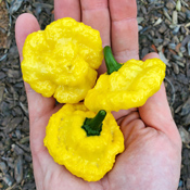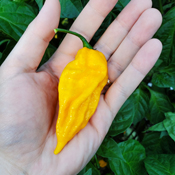 These beautiful, brainy, bright yellow pods from Trinidad have a great heat and a wonderful fruity flavor! One of our favorites year after year.
