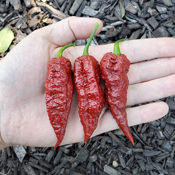 Brainy, large, gnarly, brick-red pods with a stinging Scorpion heat and nice flavor. A personal favorite of ours - photos don't do it justice, this is a stand out variety!