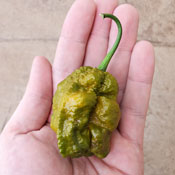 This large, twisted, gnarly variety with a long stinger has an intense heat with a sweet flavor.